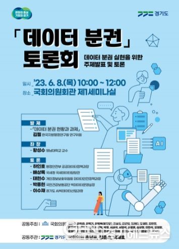 경기도는 오는 8일 오전 10시 국회의원회관 제1세미나실에서 염태영 경기도 경제부지사와 국회의원, 민간 전문가, 공무원 등이 함께하는 ‘데이터 분권 국회토론회’를 개최한다고 2일 밝혔다.