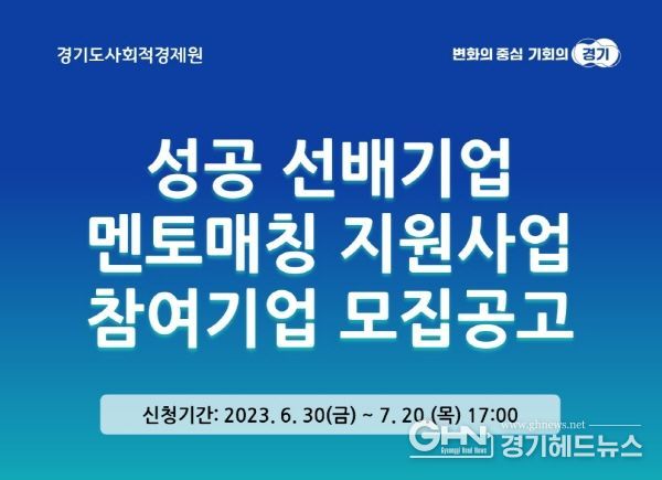 경기헤드뉴스 성미연 기자 | 경기도사회적경제원은 ‘2023년 성공 선배기업 멘토매칭 지원사업’에 참여할 사회적경제기업을 오는 7월 20일까지 모집한다.
