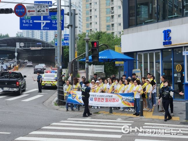경기헤드뉴스 성미연 기자 | 용인특례시 수지구 죽전1동은 안전한 교통환경을 조성하기 위해 죽전교차로에서 자율방범대와 합동으로 ‘우회전 일시정지’ 캠페인을 펼쳤다고 5일 밝혔다.