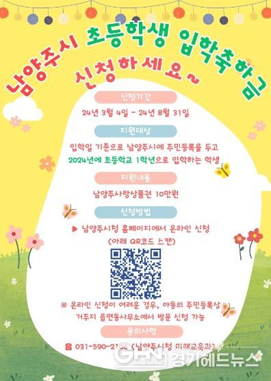 경기헤드뉴스 성미연 기자 | 남양주시는 26일 학부모의 교육비 부담 경감과 지역 경제 활성화를 위해 2024년 초등학교 신입생을 대상으로 1인당 10만 원의 입학축하금을 지급한다고 밝혔다.