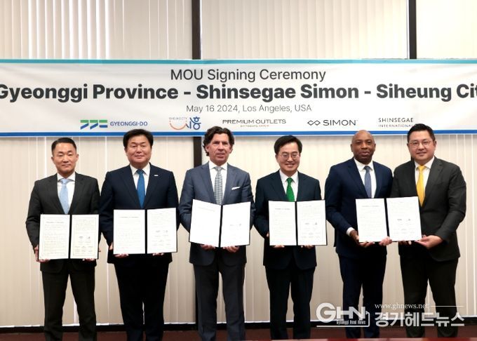 경기헤드뉴스 성미연 기자 | 경기도와 함께 방미 일정을 진행 중인 시흥시가 16일(현지시간) 로스앤젤레스무역관(LA, 캘리포니아주)에서 ‘경기도-시흥시-㈜신세계사이먼’과 약 1천억 원 규모의 투자유치 협약을 체결했다고 밝혔다.
