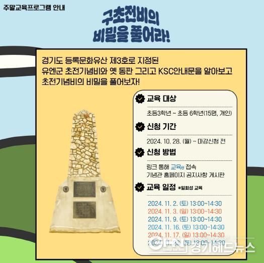 경기헤드뉴스 성미연 기자 | 오산시는 유엔군 초전기념관에서 이달 30일까지 주말 교육프로그램을 운영한다.