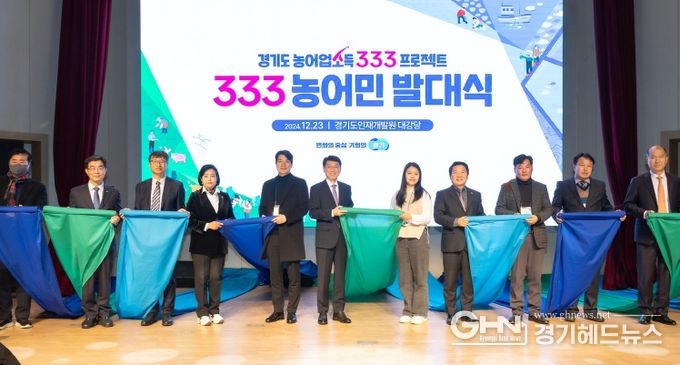 경기도는 23일 경기도인재개발원 대강당에서 김성중 행정1부지사, 정윤경 경기도의회 부의장, 방성환 농정해양위원장, 프로젝트 참여 농어민 310명 등이 함께한 가운데 ‘333 농어민 발대식’을 개최했다.