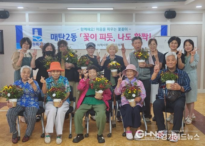 경기헤드뉴스 성미연 기자 | 수원시 영통구 매탄2동 지역사회보장협의체는 지난 18일 어르신들을 위한 꽃꽂이 프로그램을 진행했다.