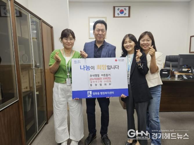 경기헤드뉴스 성미연 기자 | 수원시 장안구 영화동 통장협의회는 지난 26일, 추석 명절을 맞아 지역 내 저소득층을 위해 100만원 상당의 온누리 상품권을 영화동 행정복지센터에 전달했다.