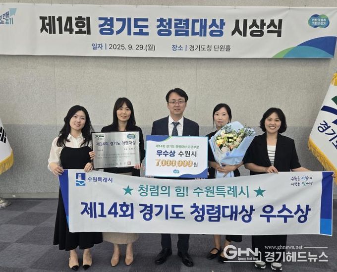 경기헤드뉴스 성미연 기자 | 수원특례시가 제14회 경기도 청렴대상에서 우수상으로 선정됐다. 시상식은 29일 경기도청 단원홀에서 열렸다.