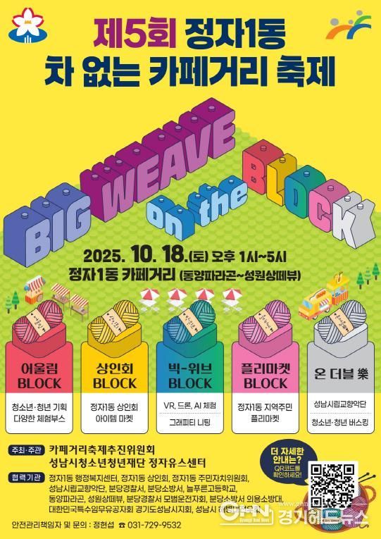 경기헤드뉴스 임수연 기자 | 성남시 분당구 정자1동 카페거리가 오는 10월 18일 하루 동안 시민들의 발걸음과 음악으로 채워진다. 카페거리축제추진위원회와 성남시청소년청년재단 정자유스센터가 주관하는 '제5회 정자1동 차 없는 카페거리 축제'가 이날 오후 1시부터 열린다.