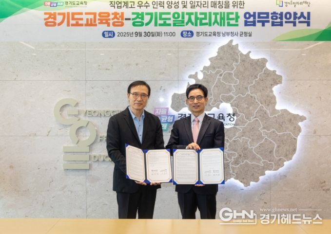 경기헤드뉴스 성미연 기자 | 경기도일자리재단과 경기도교육청은 30일 경기도교육청 남부청사에서 ‘경기도 직업계고 중심 우수인력 양성 및 고용 연계 강화를 위한 업무협약’을 체결했다.