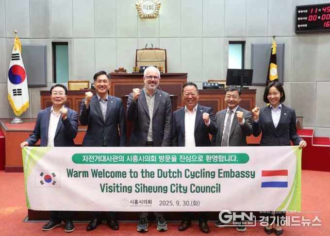 경기헤드뉴스 성미연 기자 | 시흥시의회 도시환경위원회가 9월 30일 의회청사 소담뜰에서 네덜란드 자전거대사관(Dutch Cycling Embassy, DCE)을 초청해 간담회를 열고, 시흥시 자전거 정책 발전 방향과 친환경 교통 시스템 구축 방안에 대해 논의했다.
