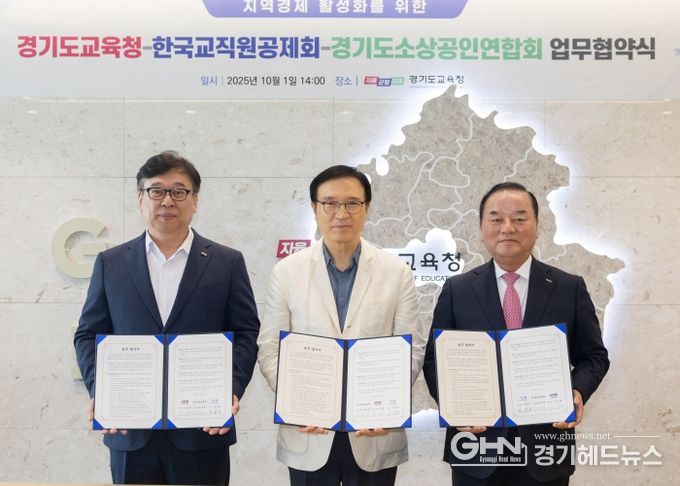 경기헤드뉴스 성미연 기자 | 경기도교육청이 1일 남부청사에서 경기도소상공인연합회, 한국교직원공제회와 ‘지역경제 활성화를 위한 상생 업무협약’을 체결했다.
