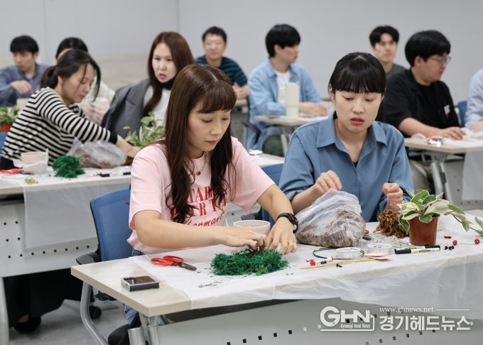 경기헤드뉴스 성미연 기자 | 용인도시공사는 임직원의 스트레스 예방과 마음 안정 지원을 위해 10월 2일 용인미르스타디움에서‘반려식물 토피어리 만들기’프로그램을 진행했다고 밝혔다.