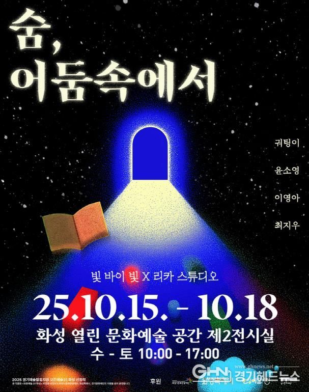 경기헤드뉴스 임수연 기자 | 화성특례시와 화성시문화관광재단이 추진하는 ‘2025 모든예술31 화성’ 사업에 선정된 '숨, 어둠속에서'가 오는 10월 15일부터 10월 18일까지 화성 열린 문화예술 공간 제2전시실에서 개최된다. 이번 전시는 미디어아트를 활용한 몰입형 전시로, 오전 10시부터 오후 5시까지 진행되며 누구나 무료로 관람할 수 있다.