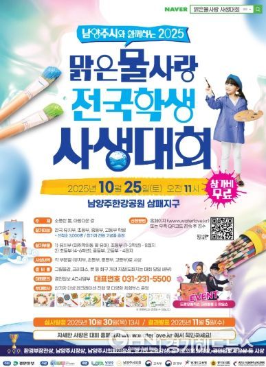 경기헤드뉴스 임수연 기자 | 남양주시는 오는 25일 오전 11시 남양주한강공원 삼패지구에서 '2025 맑은물사랑 전국학생 사생대회'를 개최한다고 밝혔다.