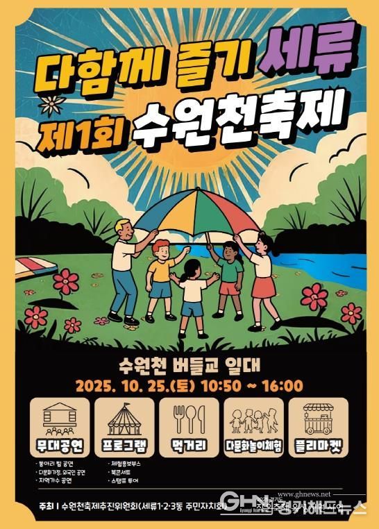 경기헤드뉴스 임수연 기자 | 수원시 권선구 ‘수원천축제추진위원회’가 주최하는 '제1회 수원천 축제 다함께즐기세류'를 오는 25일에 권선구 버들교 일대에서 개최한다고 밝혔다.