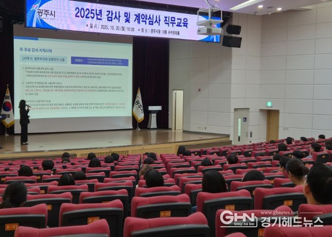경기헤드뉴스 성미연 기자 | 광주시는 20일 시청 수어장대홀에서 전 직원을 대상으로 ‘2025년 감사 및 계약심사 직무교육’을 실시했다.