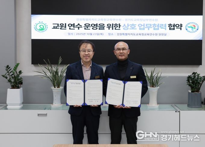 경기헤드뉴스 성미연 기자 | 경기도교육청남부연수원이 23일 강원특별자치도교육청교육연수원과 교원 연수 협력을 위한 업무협약(MOU)을 체결했다.