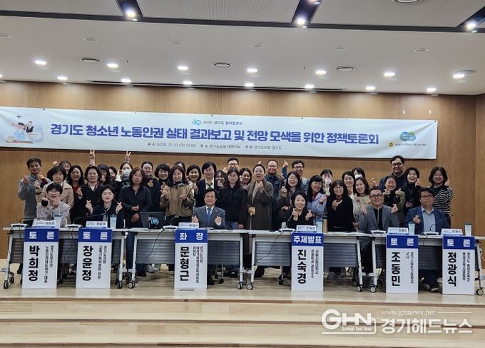 경기헤드뉴스 성미연 기자 | 문형근 경기도의회 위원장(더불어민주당, 안양3)이 좌장을 맡은 '경기도 청소년 노동인권 실태 결과보고 및 전망 모색'을 위한 정책토론회가 10월 23일 경기도의회 대회의실에서 개최됐다. 본 토론회는 경기도와 경기도의회가 공동으로 주최하는 ‘2025 경기도 정책토론회’의 일환으로 개최됐다.