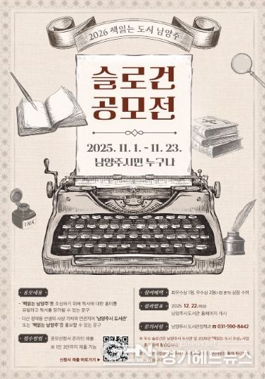 경기헤드뉴스 임수연 기자 | 남양주시는 11월 1일부터 23일까지 ‘2026 책읽는 도시 남양주 슬로건 공모전’을 개최한다고 밝혔다.