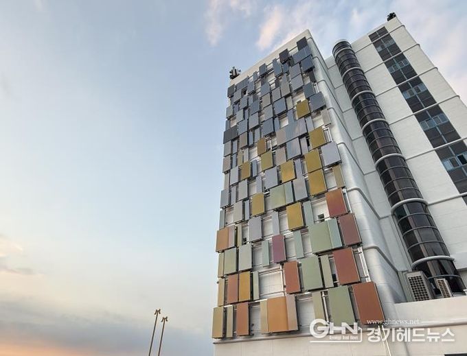 경기도는 ESG 실천형 건축물 조성을 위해 건물 외벽 전면에 25kw 규모의 컬러 태양광 패널 152개(총면적 240㎡)를 설치했다. 전력 생산과 예술적 조형미를 결합한 설비로, 낮에는 태양광을 흡수해 에너지를 생산하고 밤에는 외벽 조명을 통해 은은한 빛의 연출을 선보이는 공공예술 작품이다.