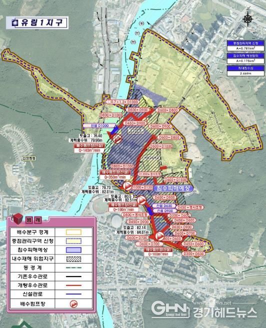 하수도정비 중점관리지역으로 지정된 ‘유림1지구 및 중앙지구’의 면적은 약 1.08㎢다. 이 지역은 하수관로의 통수 능력이 부족하고, 하천 수위가 상승할 경우 내수 배제가 어려운 지역으로 꼽혔다.