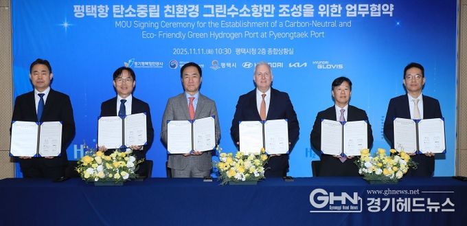 이날 협약식에서는 평택시, 평택지방해양수산청, 경기평택항만공사, 현대차, 기아, 현대글로비스 등 총 6개 기관이 참여해 수소 항만 조성에 공동으로 협력하기로 했다.
