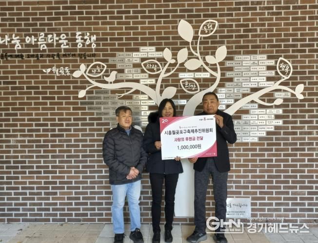 경기헤드뉴스 임채헌 기자 | 시흥시 시흥월곶포구축제추진위원회는 지난 11월 19일 ‘김장한마당’ 행사 지원을 위한 후원금 전달식을 진행했다. 이번 전달식에서 축제추진위원회는 오는 11월 22일 개최되는 ‘월곶동 김장 한마당’ 행사를 위해 100만 원의 후원금을 기탁했다.