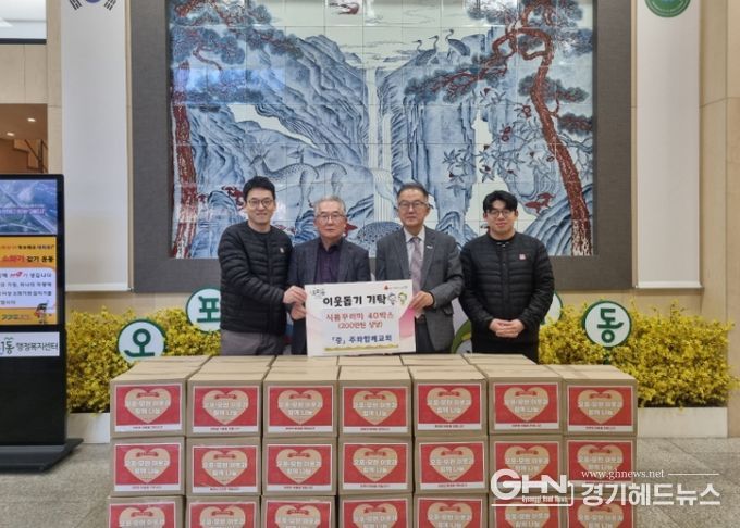 경기헤드뉴스 권준형 기자 | 주와함께교회는 20일 지역 내 어려운 이웃을 돕기 위해 식품 꾸러미 40박스(200만 원 상당)를 광주시 오포1동에 기탁했다.
