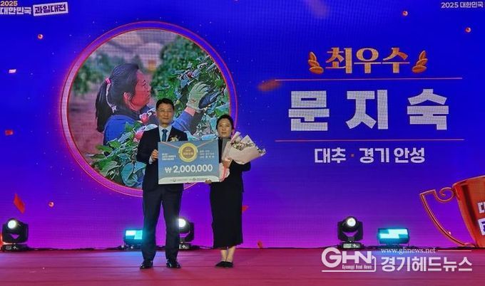 경기헤드뉴스 임수연 기자 | 농림축산식품부 주최, 한국과수농협연합회 주관으로 하는 ‘2025 대한민국 과일산업대전 대표과일선발대회’에서 안성시가 2023년부터 대추부문에서 최우수상, 우수상을 수상하여 3년 연속 대추부문 최고자리에 올랐다. 수상자로 문지숙 대표가 최우수상(농림축산식품부장관상)으로 선정됐고, 조재곤 대표가 우수상(산림청장상)으로 선정됐다.