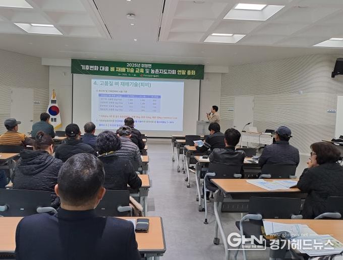 경기헤드뉴스 임수연 기자 | 안성시농업기술센터 남부농업기술상담소는 지난 12월 1일 ‘2025년 미양면 기후변화대응 벼 재배기술 교육’을 실시했다.
