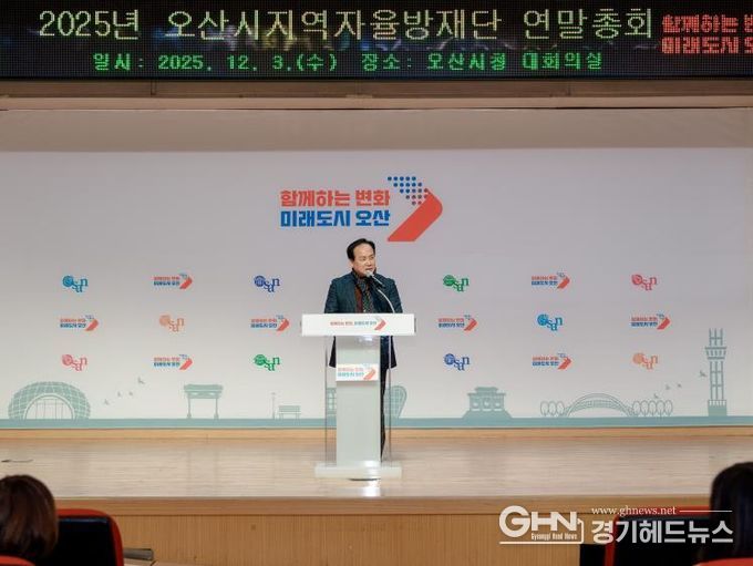 경기헤드뉴스 임수연 기자 | 오산시 지역자율방재단은 지난 3일 오산시청 3층 대회의실에서 ‘2025년 연말 총회’를 개최하고 한 해를 안전하게 마무리하는 시간을 가졌다. 이번 총회에는 이권재 오산시장, 이상복 오산시의회의장, 성길용 부의장, 시의원 4명을 비롯한 지역 관계자와 방재단원들이 참석했다.