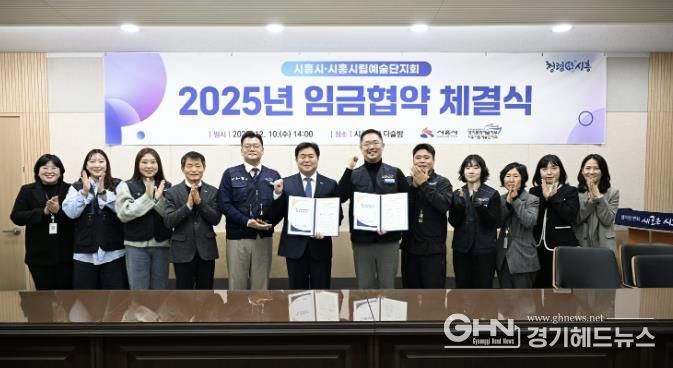 경기헤드뉴스 임채헌 기자 | 시흥시가 시립예술단 노조와 예술단원 처우 개선을 담은 ‘2025년 임금협약’을 체결했다. 시는 12월 10일 시청 다슬방에서 전국공공운수사회서비스노동조합 경기문화예술지부 시흥시립예술단지회와 임금 협약식을 진행했다.