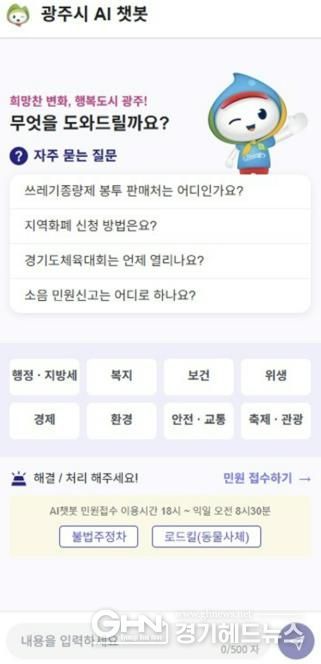경기헤드뉴스 권민성 기자 | 광주시는 생성형 인공지능(AI) 기술을 활용한 ‘광주시 AI 행정서비스 구축’ 사업을 완료하고 AI 민원 채팅 로봇과 콜봇을 22일부터 시범 운영한다고 19일 밝혔다.