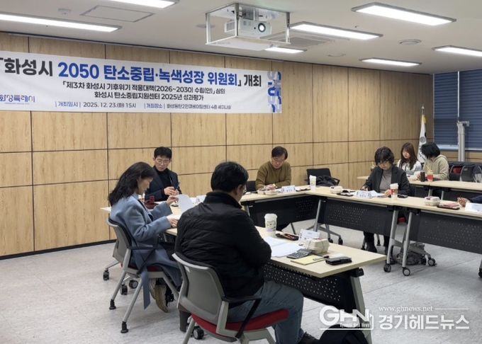 경기헤드뉴스 임채헌 기자 | 화성특례시는 지난 23일 화성동탄2인큐베이팅센터에서 ‘2050 탄소중립·녹색성장위원회’ 회의를 열고 '제3차 기후위기 적응대책(2026~2030)' 최종(안)과 탄소중립지원센터 2025년 성과 평가를 심의했다.