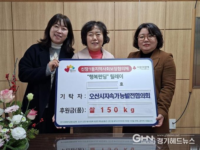 경기헤드뉴스 임수연 기자 | 오산시 신장1동 행정복지센터는 지난 24일 오산시 지속가능발전협의회로부터 관내 취약계층 가구 지원을 위한 쌀 150kg를 기탁받았다고 밝혔다.
