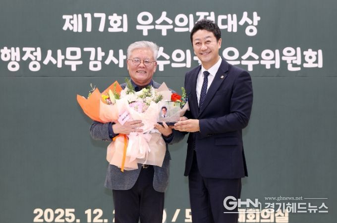 경기헤드뉴스 성미연 기자 | 경기도의회 문화체육관광위원회 홍원길 의원(국민의힘, 김포1)이 26일 2025년 경기도의회 제17회 우수의정대상 행정사무감사 우수의원상을 수상했다.
