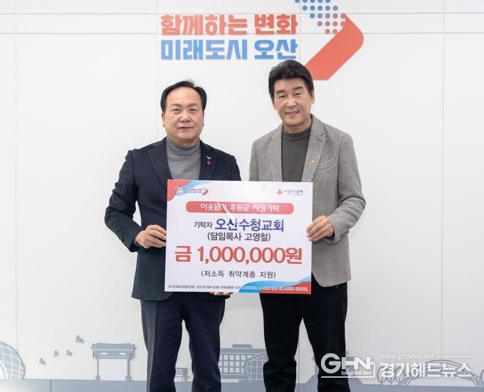 경기헤드뉴스 임수연 기자 | 오산시는 지난 26일 오산수청교회가 희망2026나눔캠페인에 동참해 관내 취약계층 지원을 위한 성금 100만 원을 기탁했다고 밝혔다.