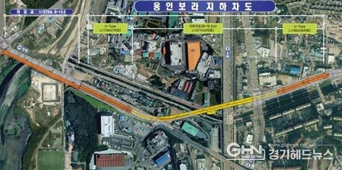 이 사업은 기흥구 보라택지개발지구 광역교통개선대책에 따라 교통혼잡 주요 지점인 하갈동과 보라동 일대의 총길이 1.65㎞ 구간 가운데 940m(양방향 4차로) 길이의 지하차도를 신설하는 공사다.