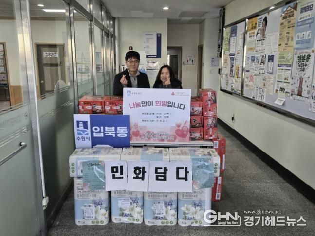 경기헤드뉴스 권준형 기자 | 지난 26일, 당수동 소재 ‘민화담다’는 입북동 행정복지센터를 방문해 라면 20박스, 휴지 10개를 전달했다.