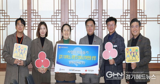경기헤드뉴스 임수연 기자 | 동현이앤씨㈜은 지난 24일 김장김치 100박스 및 라면 210박스(709만 원 상당)를 평택행복나눔본부에 전달했다.