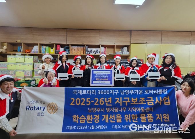 경기헤드뉴스 권민성 기자 | 남양주시는 지난 12월 24일 국제로타리3600지구 남양주가운로타리클럽이 남양주시 사회복지관 남부희망케어센터를 통해 후원금 300만 원을 기탁하고, 이를 활용해 마련한 교육 물품을 명지꿈나무지역아동센터에 전달했다고 밝혔다.