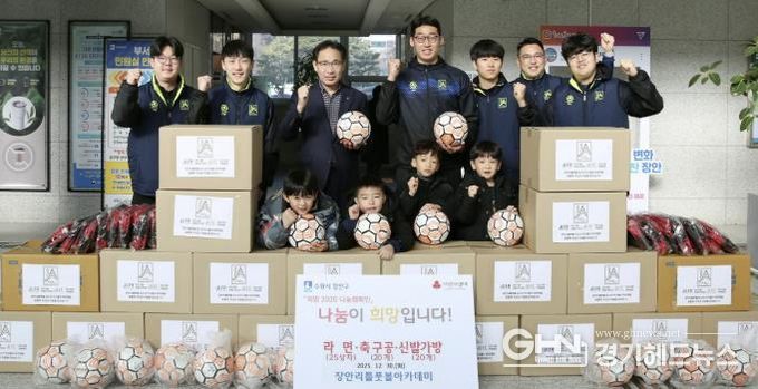 경기헤드뉴스 권준형 기자 | 수원시 장안구는 장안리틀풋볼아카데미가 지난 30일 장안구청에 라면 25상자와 축구공 20개 기부했다고 밝혔다. 이번 기부는 아카데미 회원들이 십시일반으로 정성을 모아 마련한 것으로, 장안구 관내 어려운 이웃들에게 전달될 예정이다.