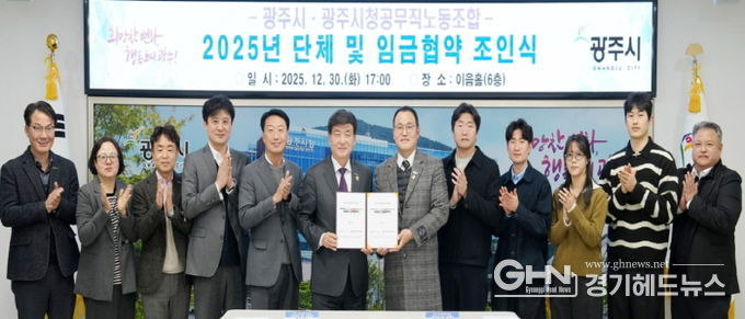 경기헤드뉴스 권민성 기자 | 광주시는 지난 30일 시청 이음홀에서 광주시청 공무직노동조합과 2025년도 단체 및 임금협약을 체결했다.