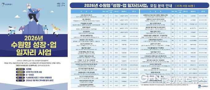 경기헤드뉴스 권준형 기자 | 수원특례시가 ‘2026년 수원형 성장-업 일자리사업’에 참여할 시민 46명을 모집한다.