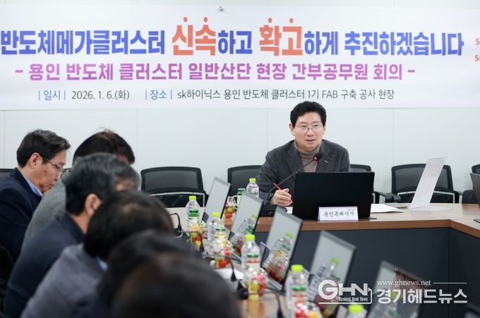 경기헤드뉴스 성미연 기자 | 용인특례시는 6일 SK하이닉스의 첫 번째 팹(Fab) 건설공사가 진행 중인 처인구 원삼면 용인 반도체 클러스터 일반산업단지 현장을 방문해 2026년 첫 현장 간부공무원 회의를 진행했다.