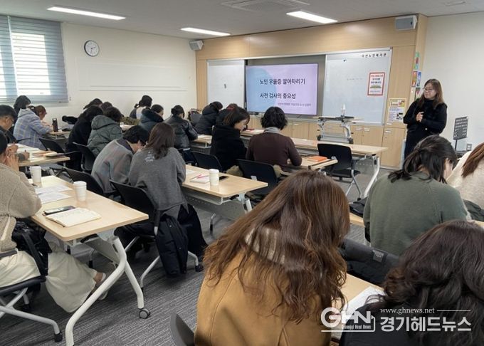 교육 내용은 △ 노년기 우울의 주요 증상과 특성 △우울 고위험군 조기 발견 방법 △위기상황 대응 요령 및 정신건강복지센터 연계 절차 등 현장 중심의 실무 내용으로 구성됐다.
