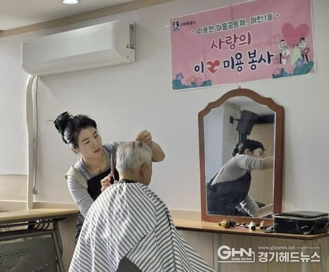 경기헤드뉴스 권준형 기자 | 수원시 영통구 매탄1동행정복지센터는 지난 13일, 자원봉사 재능기부로 이·미용 서비스를 진행하고 취약가구 3명의 어르신 머리를 정갈하게 손질하며 삶의 활력을 불어넣는 뜻깊은 시간을 마련했다.