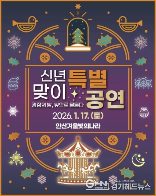 특별공연에는 인기 뮤지션 지올팍과 시온이 출연해 안산의 환한 겨울밤을 더욱 따뜻하게 물들이며, 시민들과 새해의 시작을 함께한다.