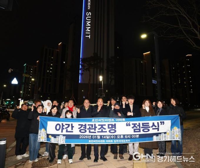 이번 점등식은 기존 옥탑부 조명을 보완해 새롭게 설치한 ‘라인 경관조명’의 본격적인 가동을 알리는 행사로, 아파트 외벽을 따라 조성된 경관조명이 점등되며 단지 전반의 야간 경관이 한층 밝고 쾌적하게 개선됐다.