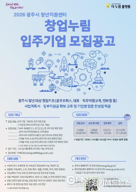 경기헤드뉴스 권민성 기자 | 광주시는 지역 내 유망한 청년 창업가를 발굴하고 안정적인 창업 환경을 조성하기 위해 ‘2026년도 창업누림 신규 입주기업’을 공개 모집한다고 19일 밝혔다.