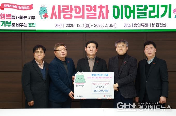 경기헤드뉴스 성미연 기자 | 용인도시공사는 19일 ‘노사합동 사랑의열차 이어달리기’ 성금 1,400만원을 용인특례시에 기탁했다.